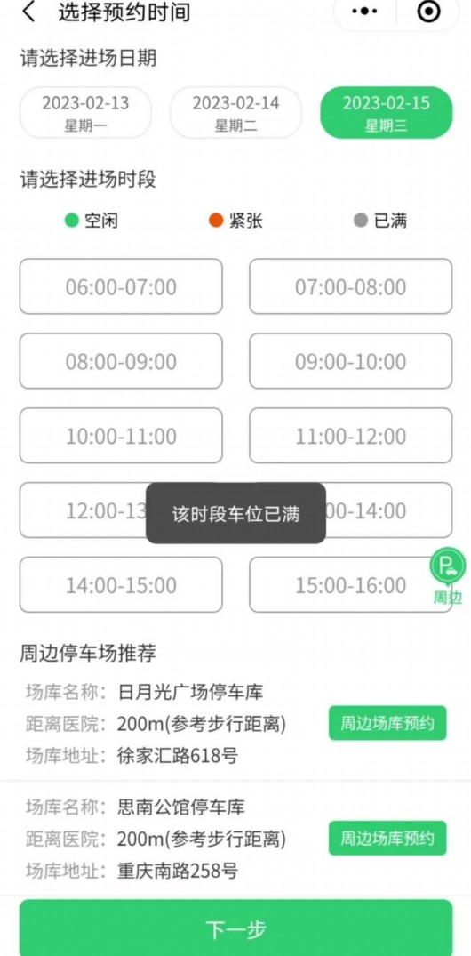 瑞金医院:2月13日、14日、15日三天的预约车位已约满。