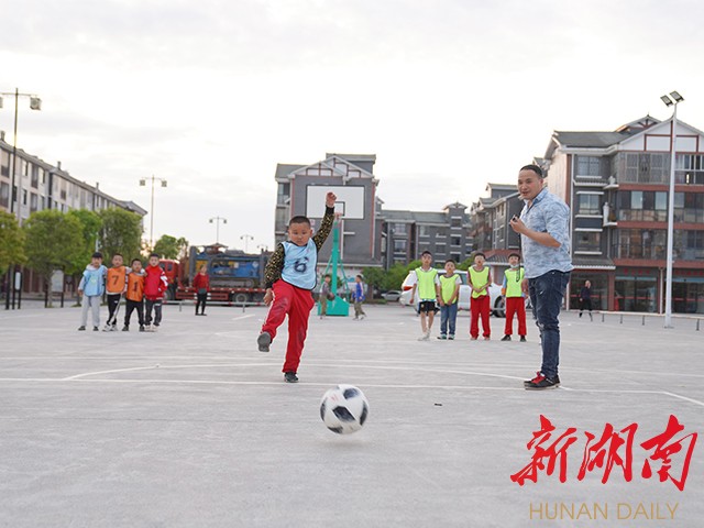 海峡路社区,是芷江规模最大的易地扶贫搬迁安置区。在社区文化广场踢足球的孩子,大多是搬迁户的娃。教练赵凯,是驻海峡路社区的乡村振兴工作队队员。