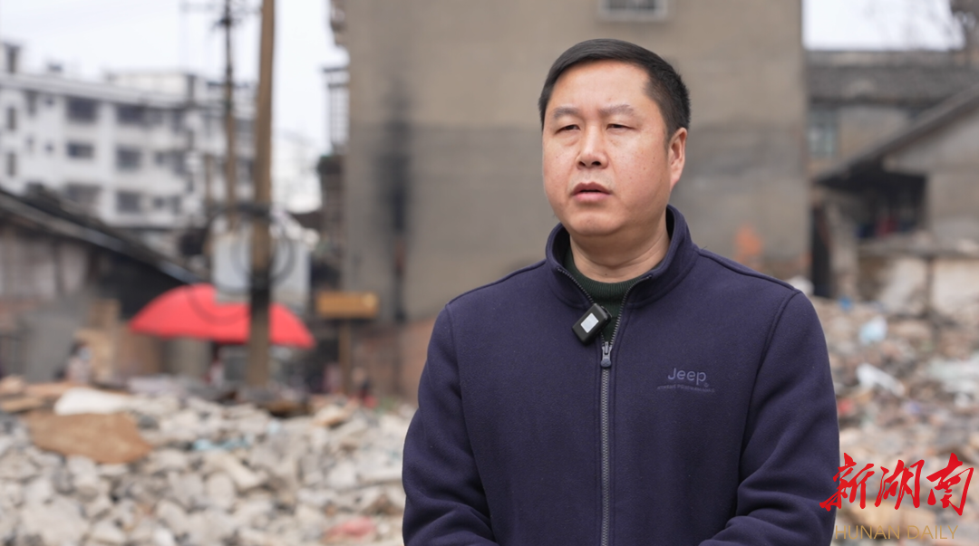 我现在所在的位置是舞水路西兴街棚户区改造项目现场,我们可以看到一边是街边经营商户的热火朝天,一边是老旧房屋的拆迁景象,在车水马龙的映衬下,这条街仿佛留在了过去的年代。据了解,市委市政府为改善当地群众居住条件,2021年10月,正式启动西兴街支路九项目。