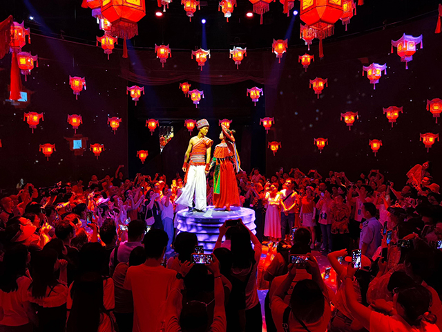 一、高举“云上花瑶”旗帜,差异化打造山地度假品牌。雪峰山台地拥有全国乃至世界独一无二的瑶族分支——花瑶的聚居地,素有“云上花瑶”之美称。集团公司打造的国家4A级雪峰山大花瑶景区就是位于海拔1300米以上的隆回县虎形山少数民族乡,因为其优美的台地风光和神奇的花瑶文化,被授予全国美丽乡村、全国生态乡镇、中国民间文化艺术之乡等多项桂冠。景区有花瑶挑花、花瑶呜哇山歌、花瑶婚俗等8项非物质文化遗产,是全国拥有非遗数量最多的景区。景区每年定期举办盛大的花瑶传统节日纪念日讨僚皈、讨念拜、腊八节、龙灯节、丰收节、尝新节等农耕文明节庆活动万人围观游,非常热闹。为了传承和再现这种火爆场景,吸引更多的客人留下来,促进旅游消费,一方面与当地花瑶理事会合作,把这些花瑶节庆活动进行完善和创新;另一方面,集团下面的传媒公司根据花瑶民俗与上市公中广天择运用5D技术打造了一台沉浸式的情景剧《花瑶喜宴》,该剧以原汁原味的花瑶婚俗为主线,以花瑶山歌为元素,聚焦花瑶人的衣食住行、繁衍生息、喜怒哀乐,首创融“视、听、触、感、闻” “声、光、电、景”于一体的沉浸式喜宴模式,很受游客喜爱,大多数游客就是为了观看《花瑶喜晏》而住下来,留下来。2022年9月以来演出105场,日演2场,有时要加演,容纳400多人剧院,场场爆满,最高场收入达4万多元。