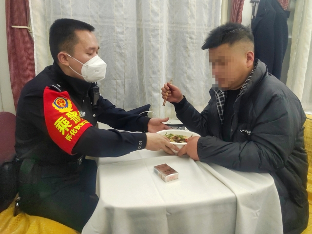 2月16日,旅客列车上一名男子因个人情感问题借酒发泄情绪,怀化铁路乘警耐心安慰,一碗舒心的面条,化解了对方的烦恼和忧愁。