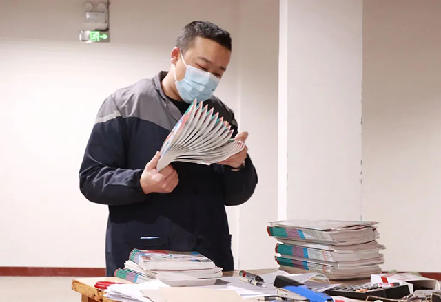2月3日,在会同县新华书店仓库,工人们正在仔细清点将配送至各学校的学习教材。书店内,还有学生在店内选购教辅图书。
