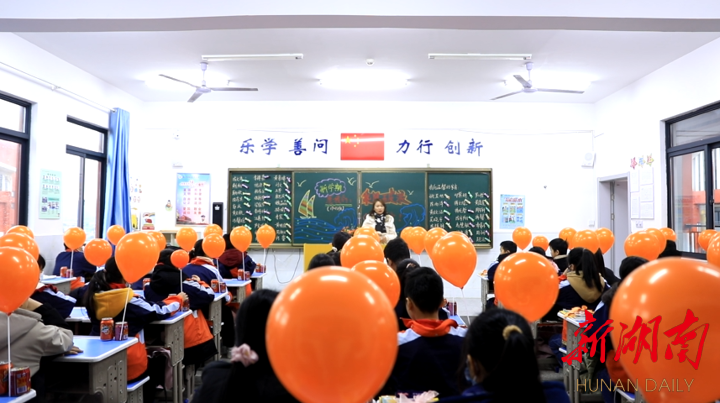 在江华芙蓉学校的各班教室里,不少教师巧花心思提前准备,五彩缤纷的气球柱、充满寓意的开学礼物、写满新学期寄语的黑板……各种“迎新”元素突出,仪式感满满,营造喜庆的校园氛围。老师带领学生们分享互动,欢迎孩子们回校开展新学期的学习生活。