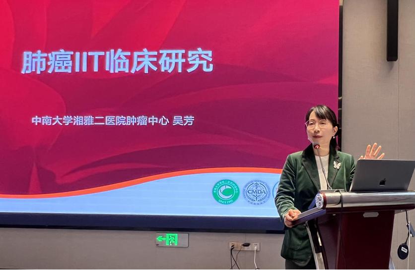 会议分为科研篇和实践篇两大部分。科研篇由永州市中心医院肿瘤科主任罗鹏飞主持。吴芳教授以《ctDNA监测晚期NSCLC患者一线长程免疫治疗后进展风险的多中心、前瞻性、观察性临床研(CR1STAL研究)》《探索EGFR突变阳性晚期NSCLC三代EGFR-TKIs一线治疗原发耐药机制的多中心临床研究(PRECISE研究)》为题,为大家带来了IIT临床研究分享;蒲兴祥教授的演讲题目为《我们的临床研究进展》,带领大家探索晚期肺癌患者的最优治疗方案;来自中南大学湘雅二医院的谢贵元教授、刘进友博士,永州市中心医院肿瘤科副主任丁思娟、肿瘤科副主任唐华燕,永州市第三人民医院肿瘤科副主任医师李彬彬等,针对为什么做科研、怎样做科研、如何设计研究方案等科研问题各抒己见,表达了对肿瘤科研的想法与思考。