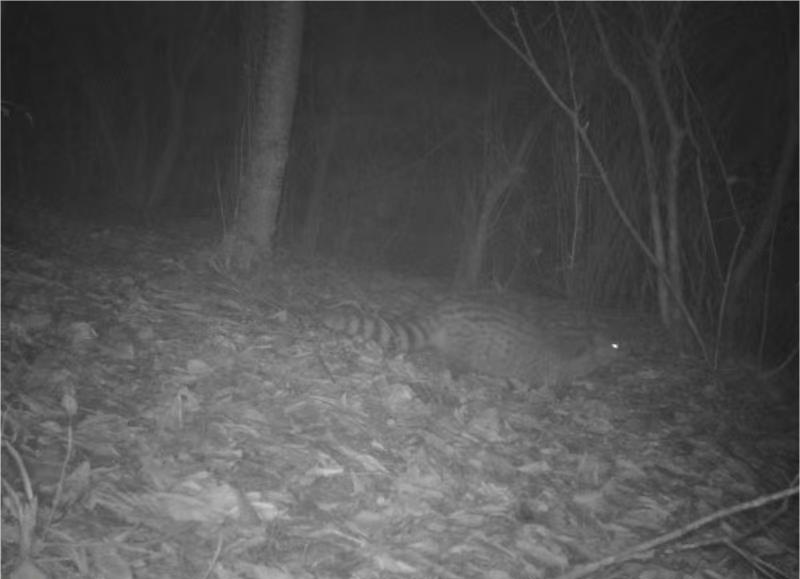 近日,湖南南山国家公园金童山自然保护区工作人员在清理红外相机时再次拍摄到国家一级保护动物小灵猫的身影。