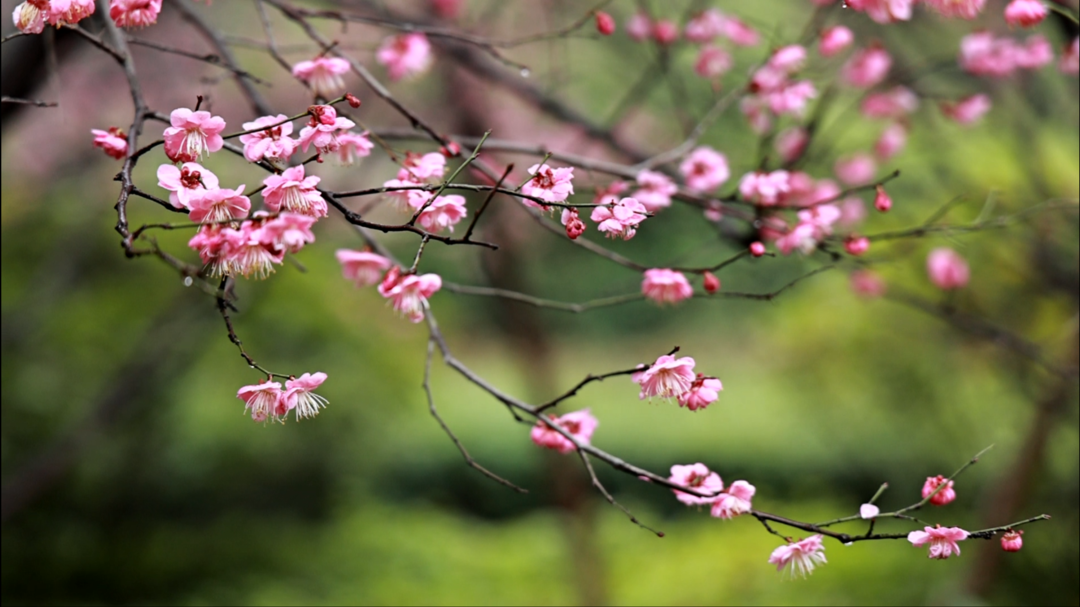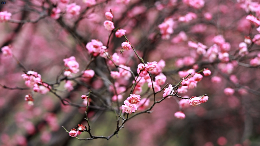 俯瞰,一簇簇红梅形成一片花海,春意盎然的画面扑面袭来。