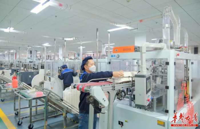 ▲2月7日,在长沙自贸临空区企业湖南妙工环保科技有限公司生产车间,一条条生产线开足马力加速运转着,现场一片繁忙景象。据了解,企业订单已经排到了6月份。章帝 摄