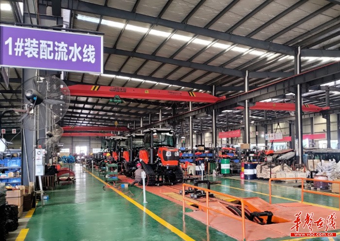 ▲农机市场迎来生产和销售旺季,1月29日,郴州自贸片区的农夫机电装卸区,工人师傅们正将一台台三角履带拖拉机装车、出货,各条生产线都在满负荷运转,平均每30分钟就有一辆农机下线。目前公司生产订单已经排到了4月底。郴州片区供图