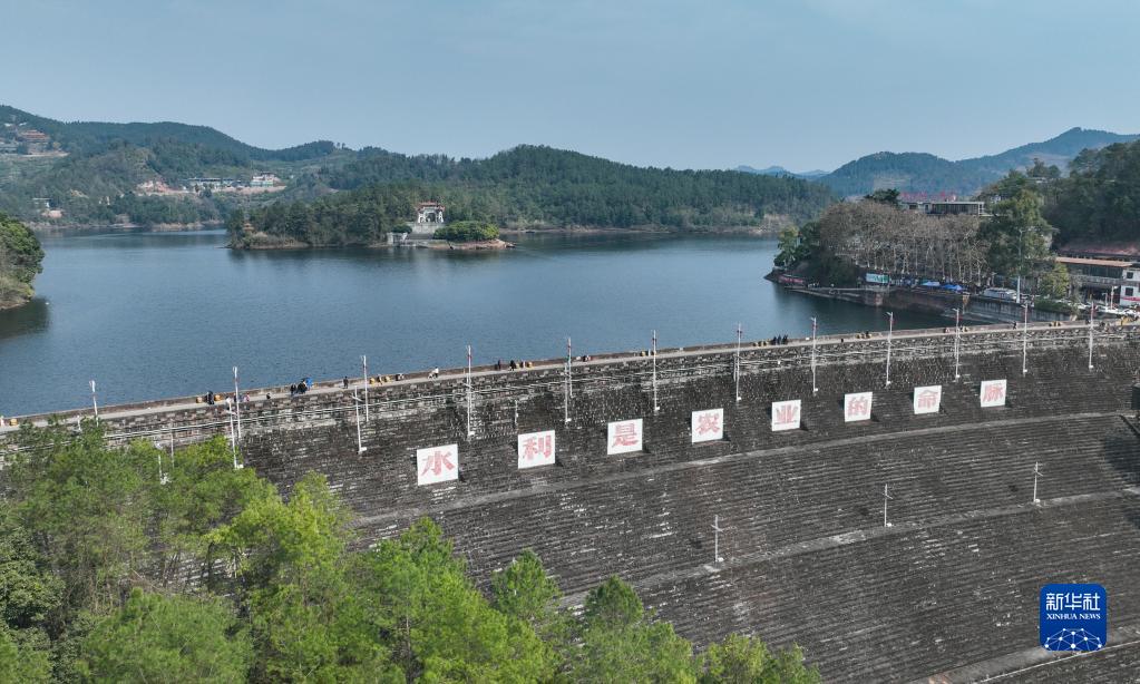 这是2月25日拍摄的眉山市仁寿县黑龙滩水库堤坝(无人机照片)。