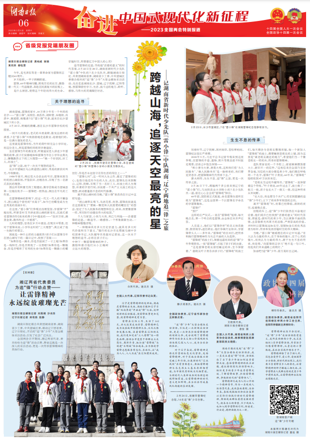 追寻雷锋的足迹,寻找他“活着的意义”的时代答案。2月22日至28日,湖南省新时代少先队“雷小锋”中队的7名少先队员,跟随湖南日报社、共青团湖南省委、湖南省少工委、中共望城区委联合组织的“追‘锋’少年”大型全媒体采访活动,先后走进湖南长沙、望城,辽宁抚顺、辽阳等地,到雷锋曾经学习、生活、战斗过的地方,聆听、感悟,与伟大的灵魂隔空对话。