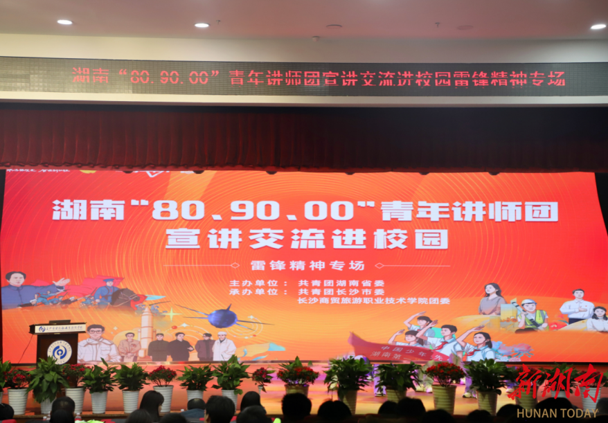 湖南日报·新湖南客户端3月5日讯(通讯员 周易)“伟大时代呼唤伟大精神,崇高事业需要榜样引领”“立足岗位,做新时代新雷锋。” 3月3日下午,湖南共青团“80、90、00”青年讲师团宣讲交流进校园雷锋精神专场活动在长沙商贸旅游职业技术学院举行。