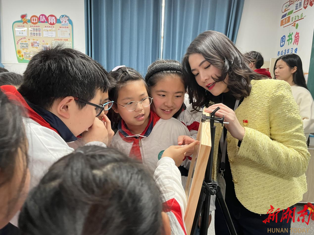 随着人工智能机器车到达湖南雷锋纪念馆红色站点,“大手拉小手”公益社团大学生们领着1804班的同学们走进红色场馆,通过史料视频学习让同学们了解雷锋平凡而伟大的一生。在雷锋剪纸艺术画呈现环节,“小手”们簇拥在剪纸画旁,沉浸在社团艺术指导老师楚娴和解灿洲等“大手”讲述的雷锋故事中,他们听的炯炯有神,雷锋精神就像春风一样拂过了同学们稚嫩的心灵,一颗颗学雷锋的种子在他们心中慢慢生根发芽。
