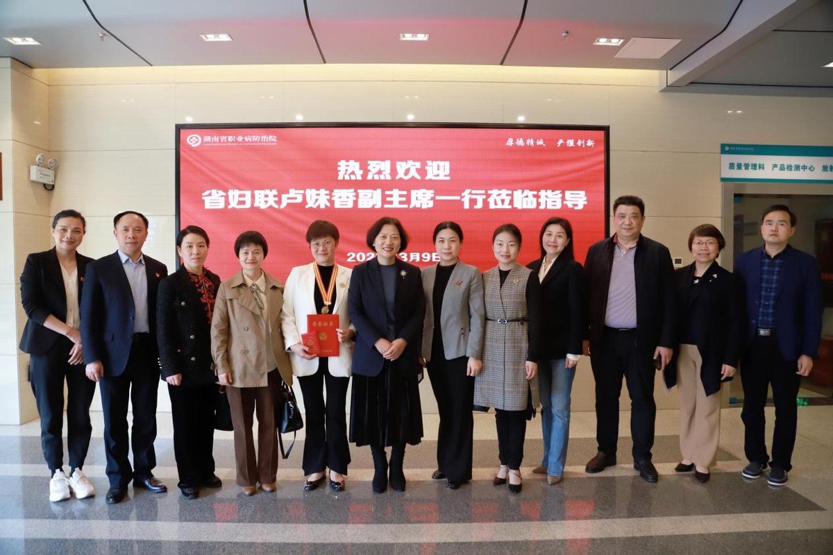 蒋文君代表院党政领导班子对卢妹香一行表示热烈欢迎,对省妇联、省直妇工委、省卫健委妇委会长期以来对医院的关心支持表示衷心感谢。她表态:省职防院将始终牢记医者初心使命,践行卓越服务,关心支持更多女职工岗位创新、岗位成才、岗位建功,为健康湖南建设贡献更多职防力量。
