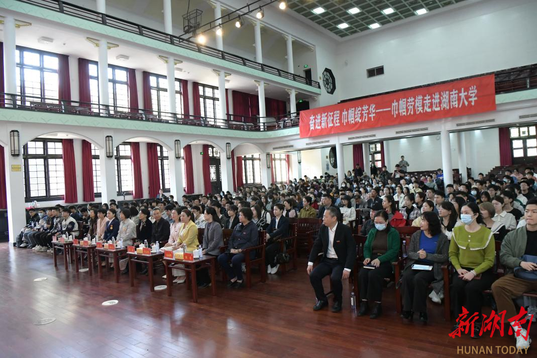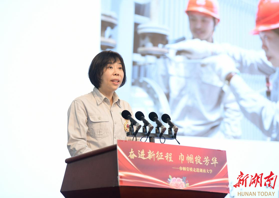 新湖南客户端3月15日讯(记者 陈丽丹 陈龙 洪志)伟大时代呼唤伟大精神,崇高事业需要榜样引领。 3月15日上午,以“奋进新征程 巾帼绽芳华”为主题的巾帼劳模走进湖南大学活动举行。我省四位巾帼劳模代表廖丽萍、张珍、裴文碧、彭豪向现场师生分享自己从普通女职工成长为全国劳模、行业楷模的心路与故事。
