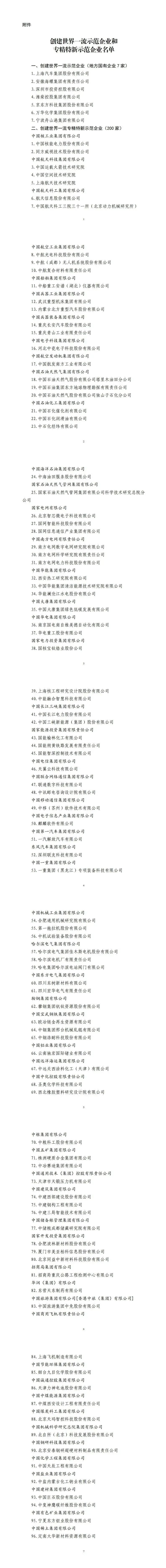 附件 创建世界一流示范企业和专精特新示范企业名单