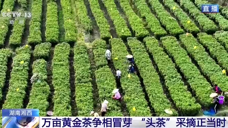在隘口村的万亩茶园,这几天,今年第一批春茶开始采摘,抢摘“头茶 ”。隘口村是一个苗族、土家族聚集的传统古村落,乡亲们世世代代种植黄金茶。湘西黄金茶是湘西古老的茶树种,野生茶树生长在云雾缭绕的深山峡谷。