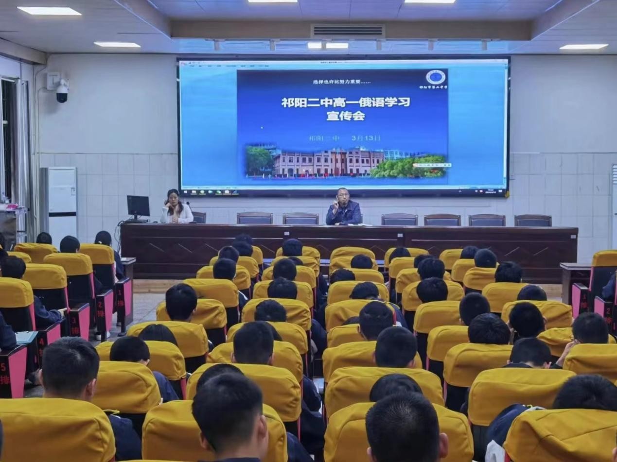 3月13日,为加强学生对小语种学科的认识,提高学习兴趣,夯实特色教学,祁阳二中高一年级部开展了俄语学习宣讲活动。活动人员中,有学校党委委员、副校长蒋杰,教务处副主任、高一年级部长李三超,俄语备课组组长尹水凤等相关人员。