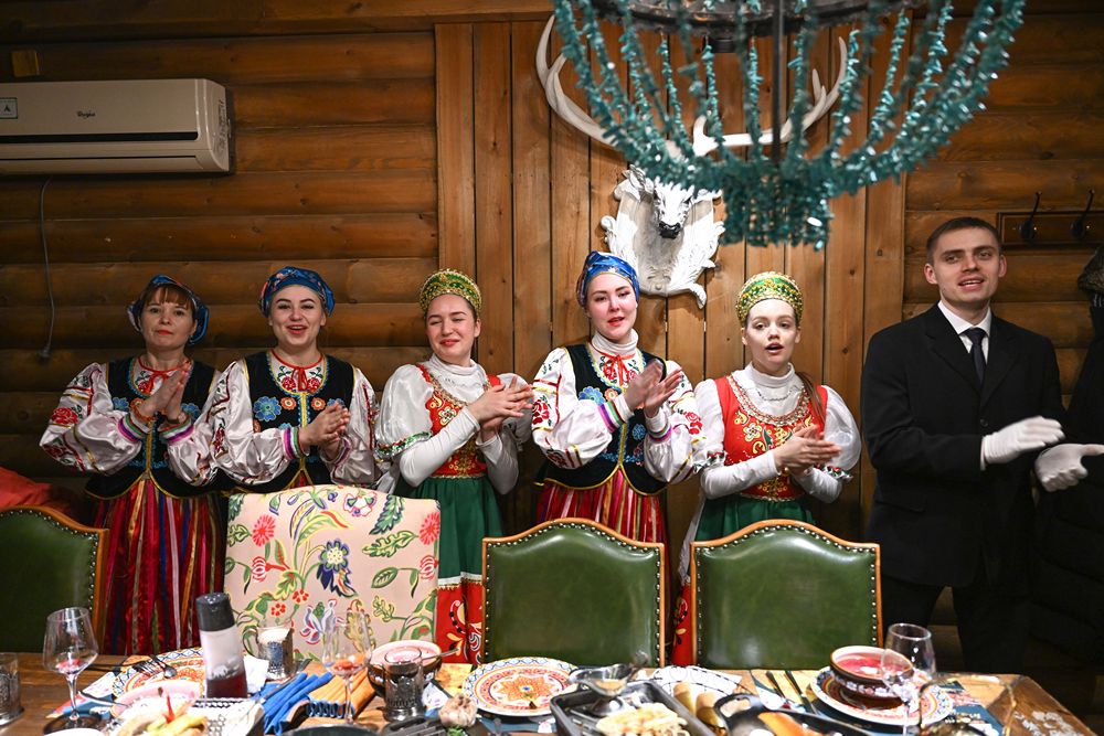 ↑3月15日,在满洲里市一家俄罗斯风味餐厅,来自俄罗斯的服务员在表演节目。新华社记者 贝赫 摄