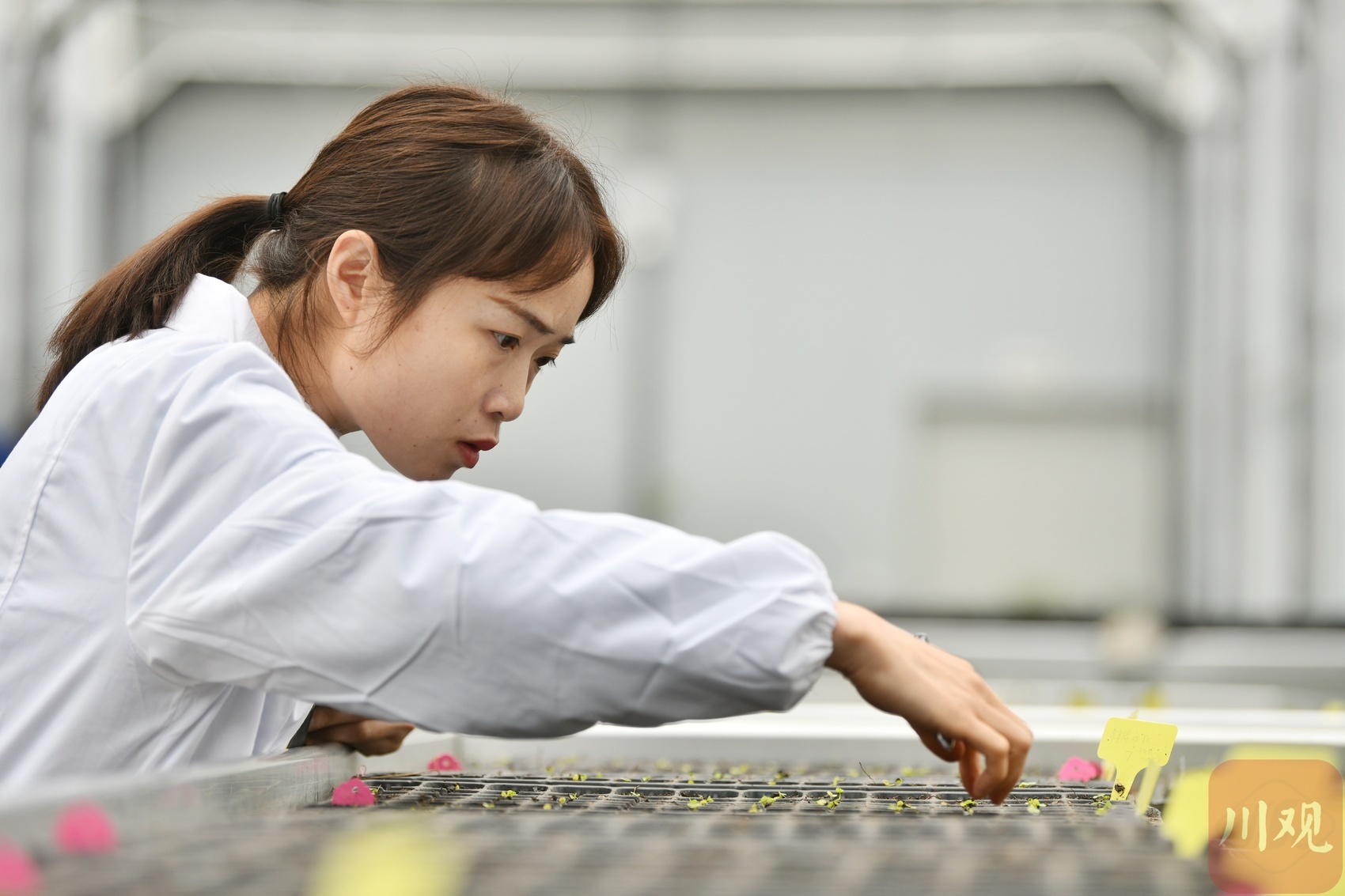 3月16日,石小庆在观察太空芙蓉的萌芽状态