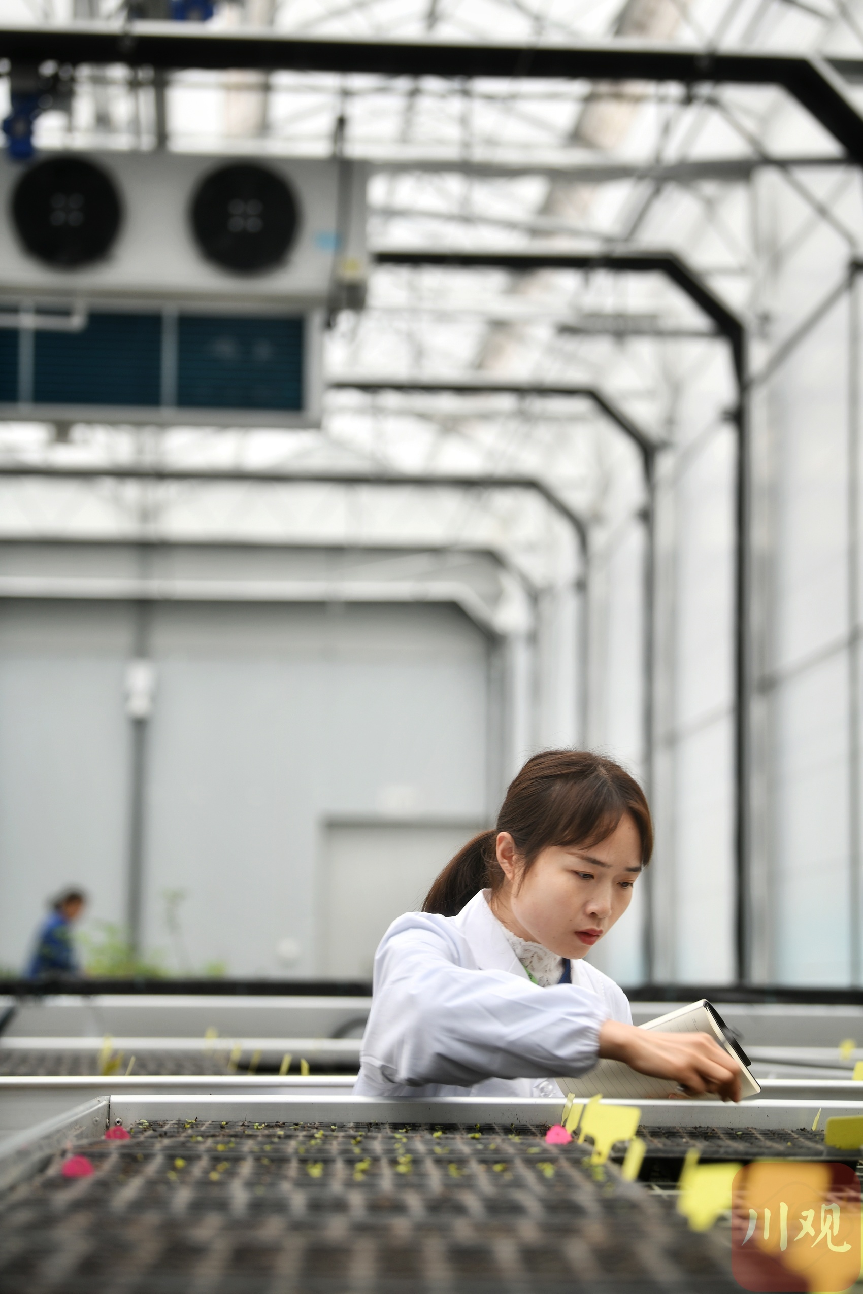 3月20日,石小庆在记录、观察太空芙蓉种子的萌芽状态