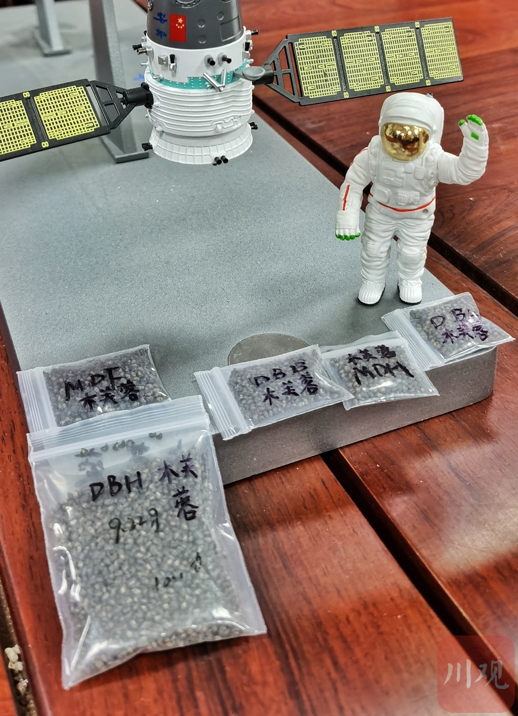 去年,成都市植物园优选出来的四个种类、4000粒芙蓉种子分批搭乘神舟十四号和神舟十五号飞船飞上太空,在完成“太空育种”之旅后,它们已于2022年底返回地球。2023年3月9日,成都市植物园科研苗圃基地的科研人员对这批太空芙蓉种子进行了“入地”萌芽培育。