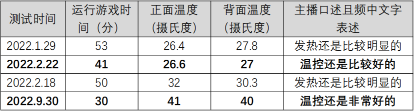 问题描述:博主于2022年1月至9月先后4次对不同手机进行温度测试。在经过一定时间运行游戏后,使用测温仪对手机正面及背面进行测温,并对手机的温控效果进行点评,4次测评结果出入较大,不同品牌的手机测评前后标准不一。