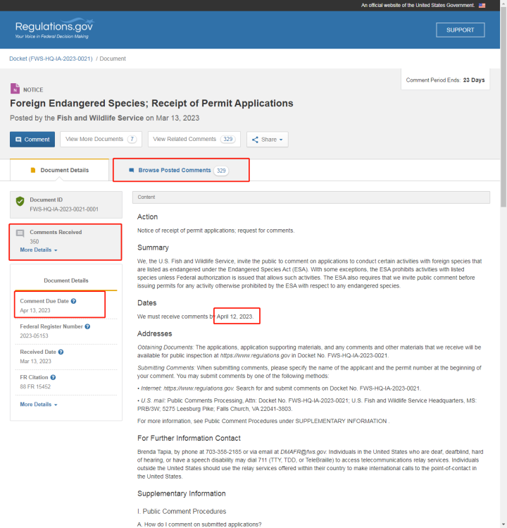 网友宋辉(化名)告诉记者,自己于3月13日就已前往该网站进行评论,“我不清楚评论是不是对缩短公示期有帮助,只能希望可以有帮助。”宋辉称,评论的操作流程还是比较简单的,“先输入regulations.gov网址,进入该网页后,输入该公示文件的许可证号码‘PER1642140’搜索,进入该文件公示页面,里面有个comment的地方,点击然后输入内容就可以了。"