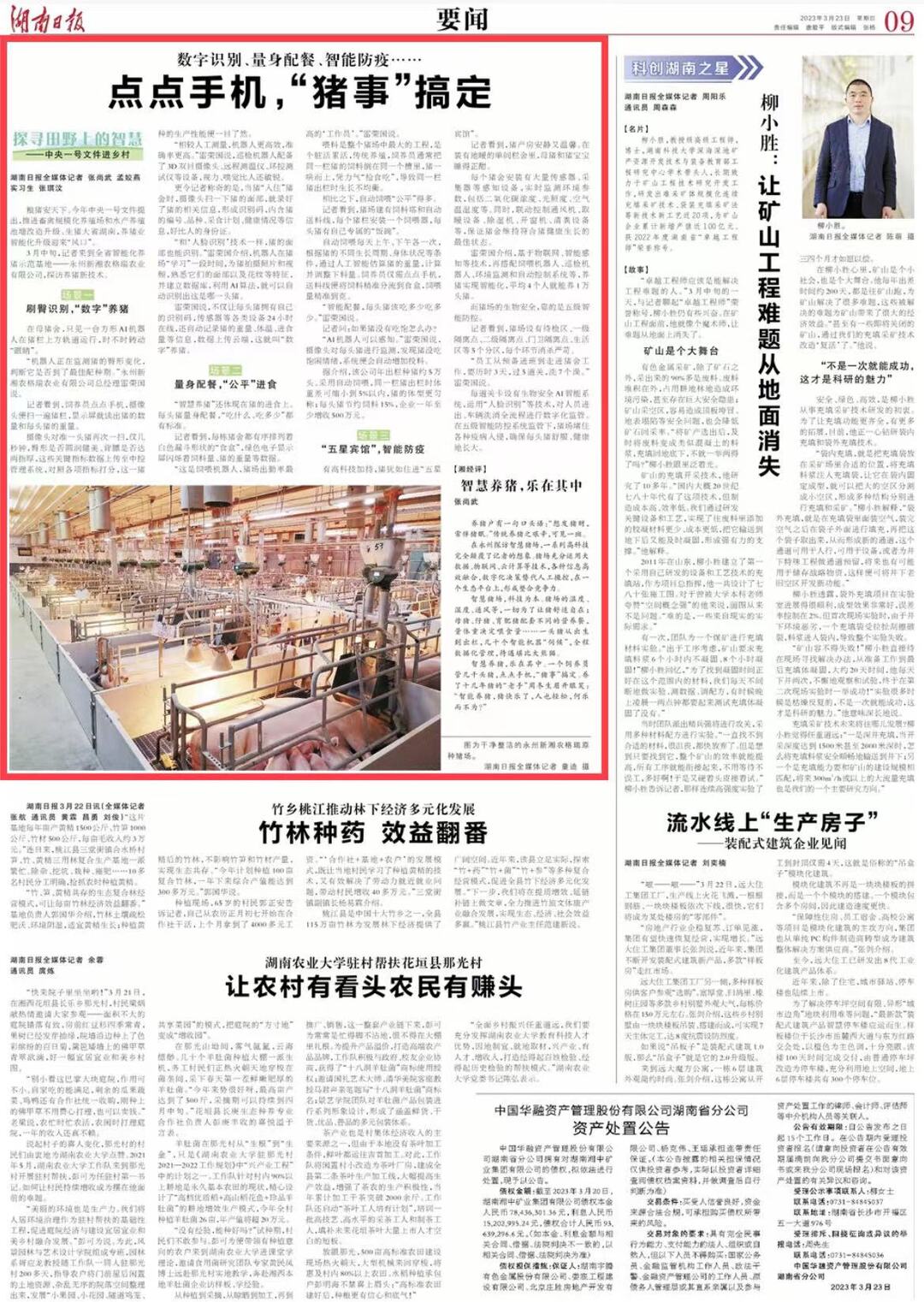 粮猪安天下。今年中央一号文件提出,推进畜禽规模化养殖场和水产养殖池塘改造升级。生猪大省湖南,养猪业智能化升级迎来“风口”。