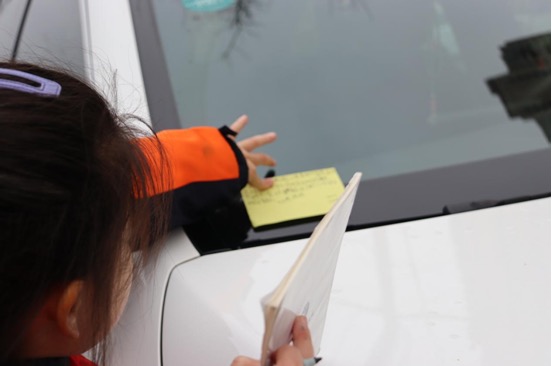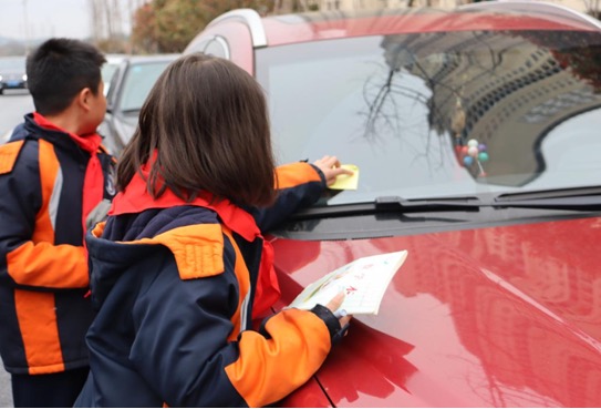 车辆随意停放在校门口,长沙小学生“出手”贴温馨提示