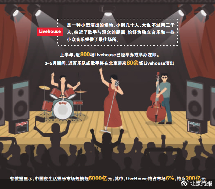 公开资料显示,国内的Livehouse市场起步较晚,2014年陆续发展至几百家,无名乐队、小众歌手靠活跃在各自城市为数不多的Livehouse甚至普通酒吧,积攒着粉丝与人气。