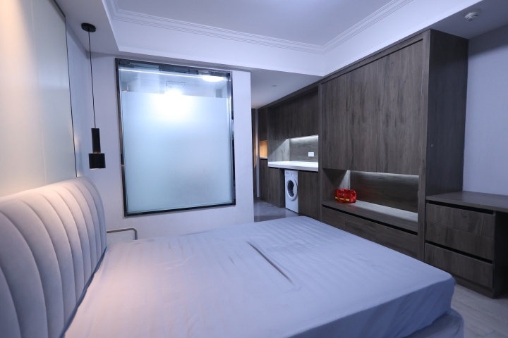 杭州上城区新塘路上的一处人才公寓房,为毕业来杭求职的大学生提供最多免费住7天的福利。临近火车东站,出门就有地铁站,40平方米的单人间,屋内配冰箱、洗衣机,公共区域有健身、电视、图书角,配套一点也不比周边日均400左右的快捷酒店逊色。
