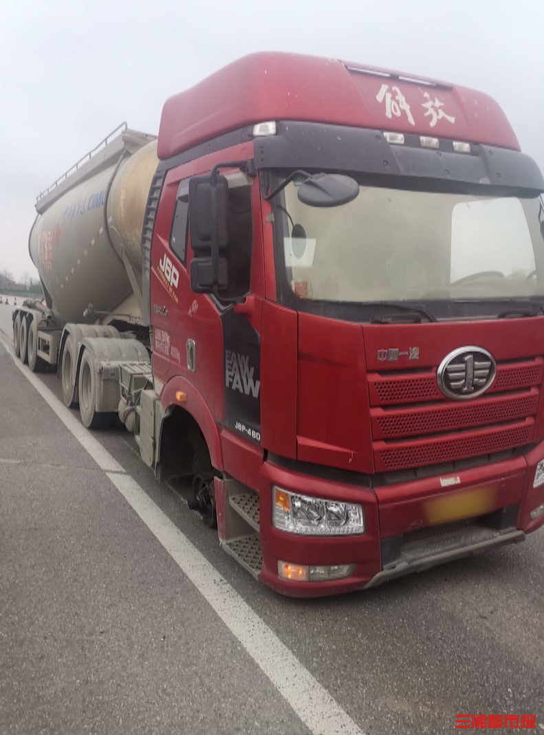 “我进到那服务区入口的时候,突然车子右边低下去了啊,然后就看到轮胎跑了……”司机尹某说。