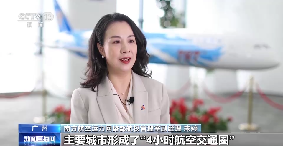 南方航空运力网络部航权管理室副经理宋婷:2023年夏秋季,南航将执行74条国际及地区航线,航班量每周732班。广州与东南亚主要城市形成“4小时航空交通圈”,与全球主要城市形成“12小时航空交通圈”。