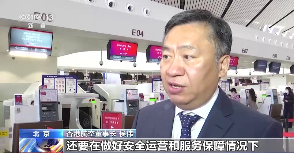 香港航空董事长 侯伟:我们感受到从国内飞往香港的需求在高速增长,我们还要协调各方面的资源,要在做好安全运营和服务保障的情况下,尽可能快速满足市场的需求。