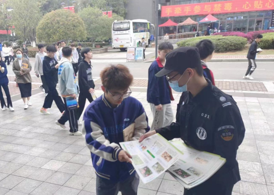 校卫队志愿者发放宣传资料。陈新雨 摄