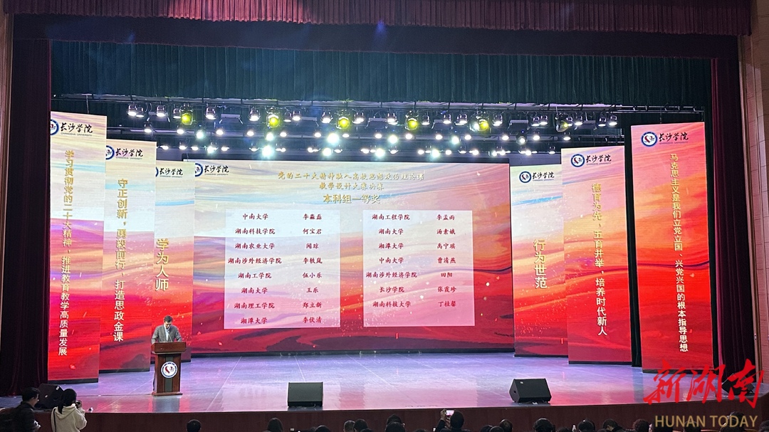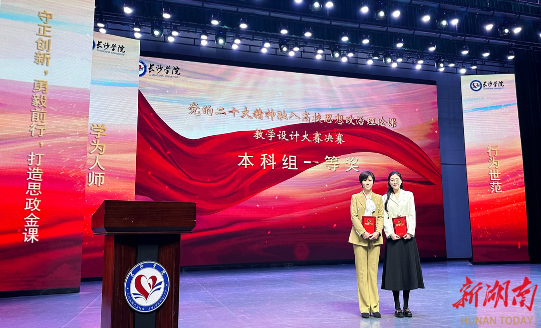 新湖南客户端3月27日讯(通讯员 田阳)3月25日,2023年湖南省党的二十大精神融入高校思想政治理论课教学设计大赛决赛在长沙学院举行,来自全省46所学校、76名教师参赛。最终,经过激烈角逐,共有15名教师获得本科组一等奖,其中,湖南涉外经济学院马克思主义学院李轶岚老师荣获“习近平新时代中国特色社会主义思想概论”组一等奖、田阳老师荣获“中国近现代史纲要”组一等奖。