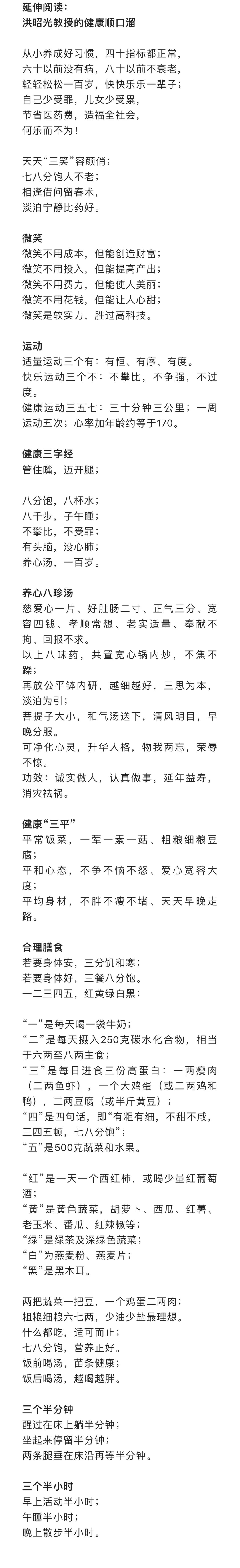 洪昭光教授曾写下自己的目标,生如春花绚烂,走如秋叶静美;无病无痛,无疾而终;平安百岁,快乐轻松。