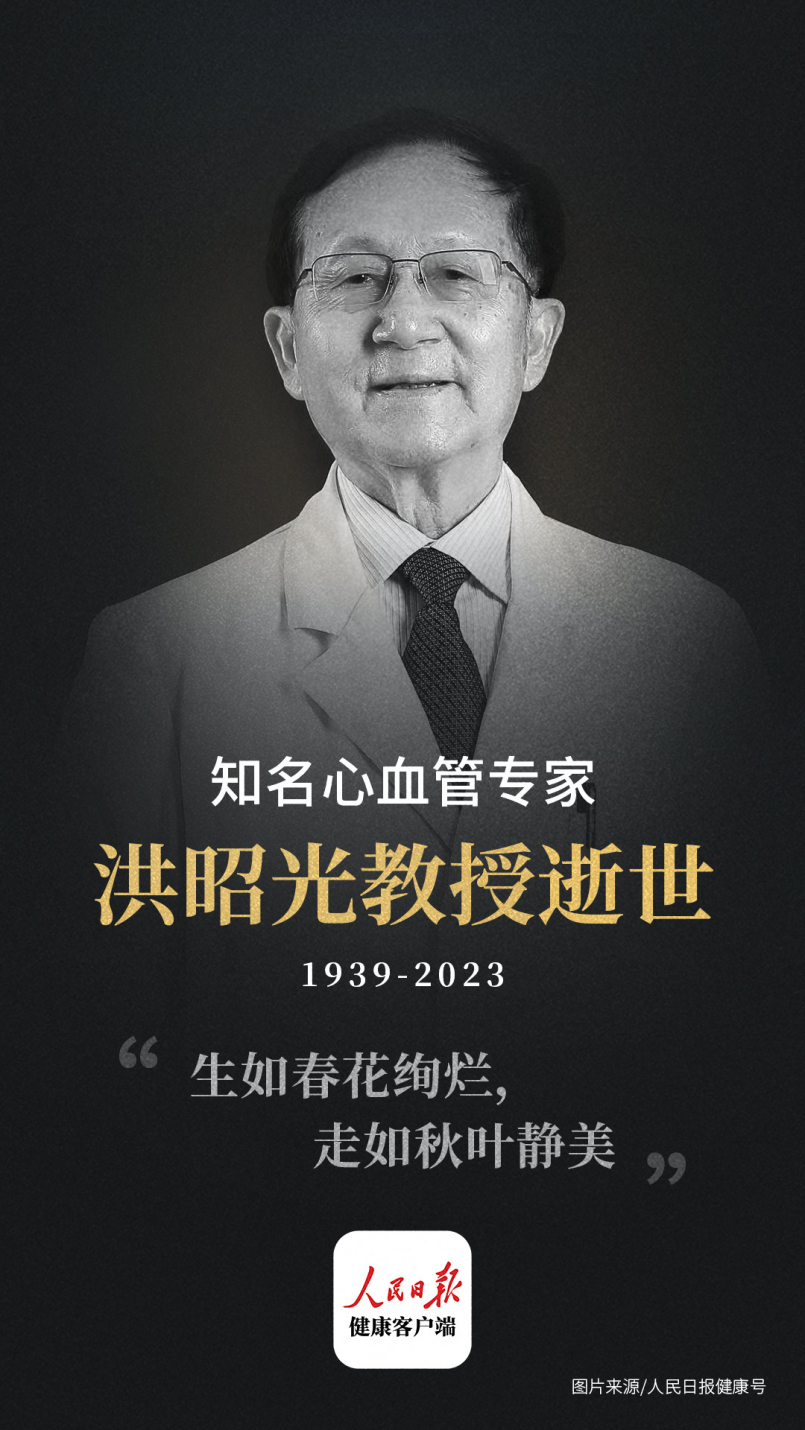北京安贞医院建院老专家、原副院长、原干部保健科主任、著名心血管病专家洪昭光教授于2023年3月24日因病去世,享年83岁。