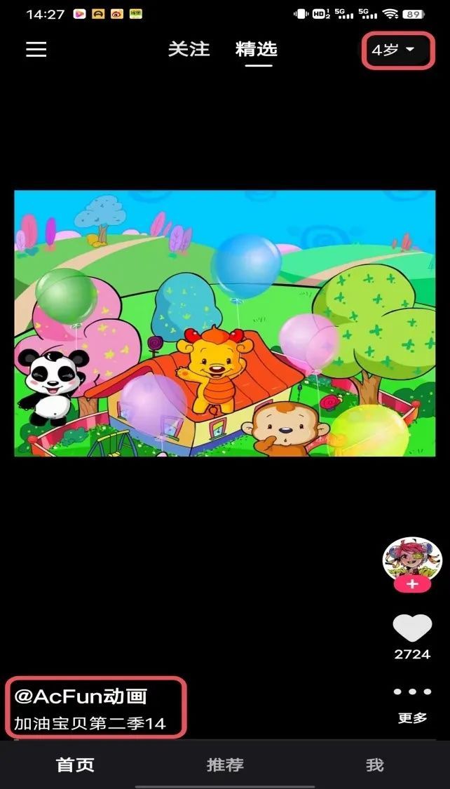 比如快手,我们模拟不同年龄段的未成年人,发现平台在精选首页随机推荐的视频内容较为相似,向4岁儿童推荐的视频和向14岁学生推荐的视频竟然是同一部动画片?!