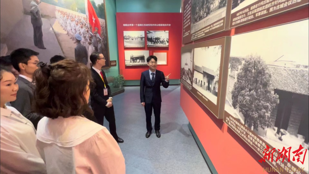 曾获湖南省“楚怡杯”技能竞赛导游服务赛项一等奖、“百年风华 走红长沙-我写长沙红”导游词创作大赛一等奖的熊一郎,是本次红色讲解志愿服务队的领队,他慷慨激昂的讲解更是引得展厅内的游客驻足停留、大家纷纷竖起大拇指。