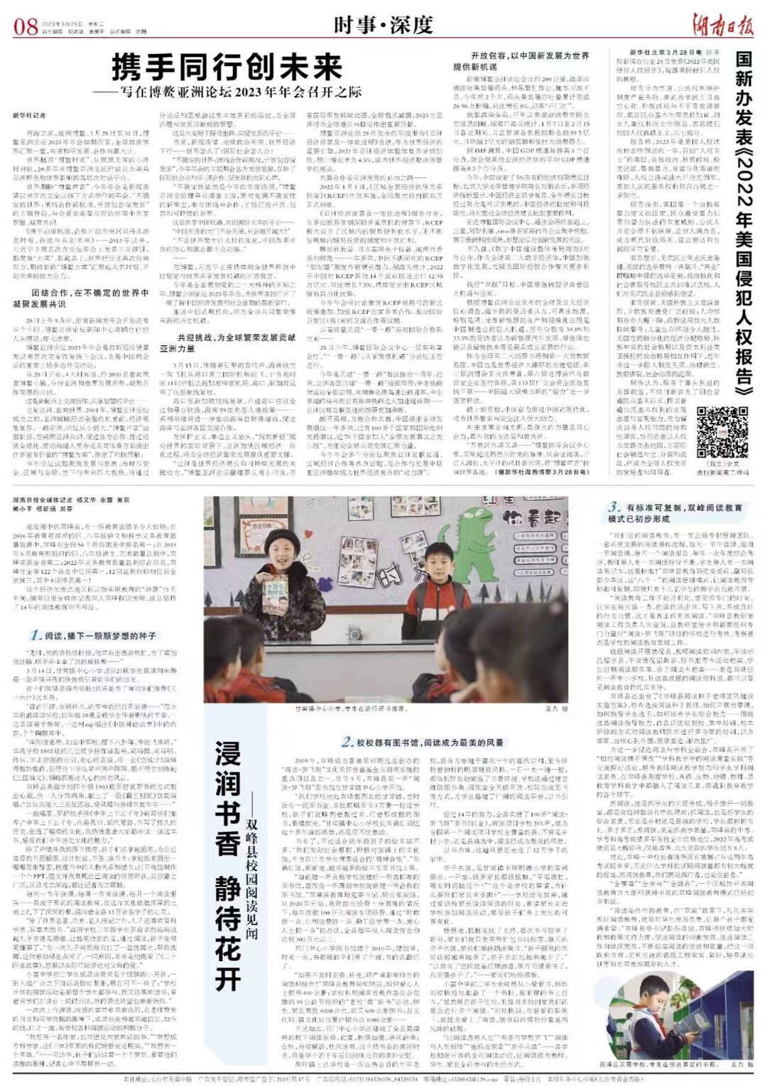 抓阅读,就是抓学生的习惯养成,随手推开一间教室,都是收拾得整洁有序的课桌;抓阅读,也是抓学生的综合素质,无论是乡村还是县城的学校,学生都彬彬有礼、多才多艺;抓阅读,更是抓教学质量,双峰县的中考、学考和高考成绩多年保持全市优势地位,2022年高考成绩更是大幅提升,仅被清华、北大录取的学生就有8人。