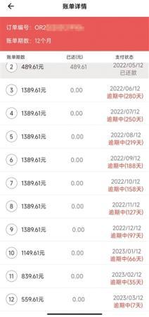 成都的肖韬是另一名应聘者,他是逾期较长的,从第3期开始就没有还款,截至今年3月19日,已经逾期280天。他在“淘乐租”平台上的12期还款,第2期账单已从489元变成了1389元,12期加起来13248元,而他最初的还款总额只有5868元。