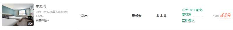 王府井永光酒店家庭房价格为609元。