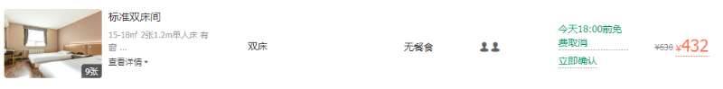 王府井永光酒店标间价格为432元。