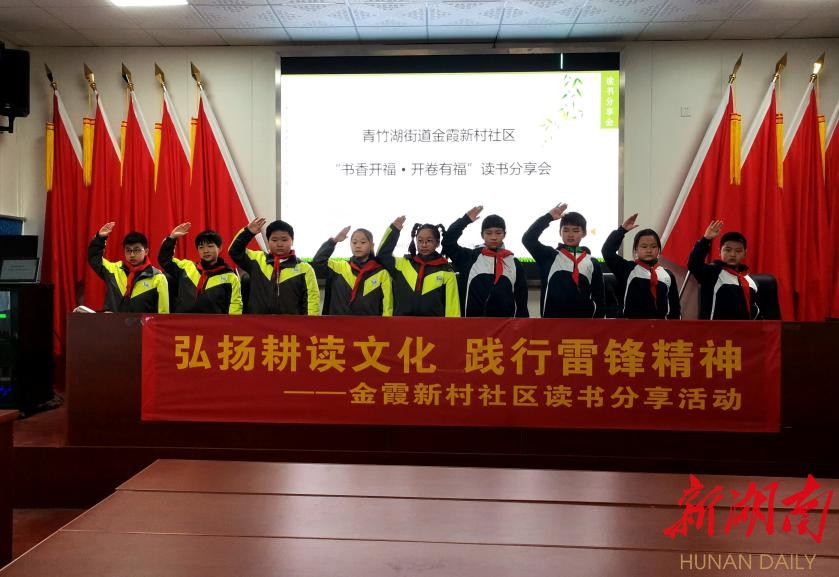 新湖南客户端3月6日讯(通讯员 王佳)为扎实推进“书香开福·开卷有福”全员读经典主题活动,营造浓郁的读书氛围,3月5日上午,长沙市开福区青竹湖街道金霞新村社区新时代文明实践站牵手青竹湖湘一外国语学校小四(5)班,结合“学雷锋日”组织开展“弘扬耕读文化 践行雷锋精神”主题读书活动,以文化之力助力乡风文明。社区网格员、雷锋志愿者、青少年及居民代表60余人参与。