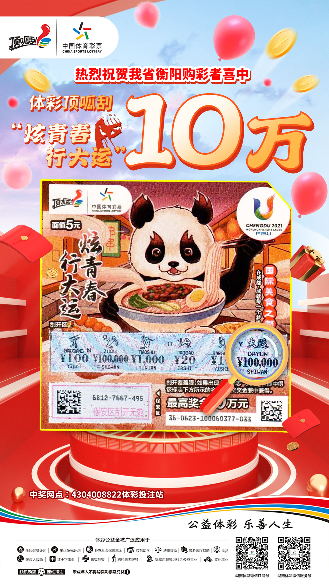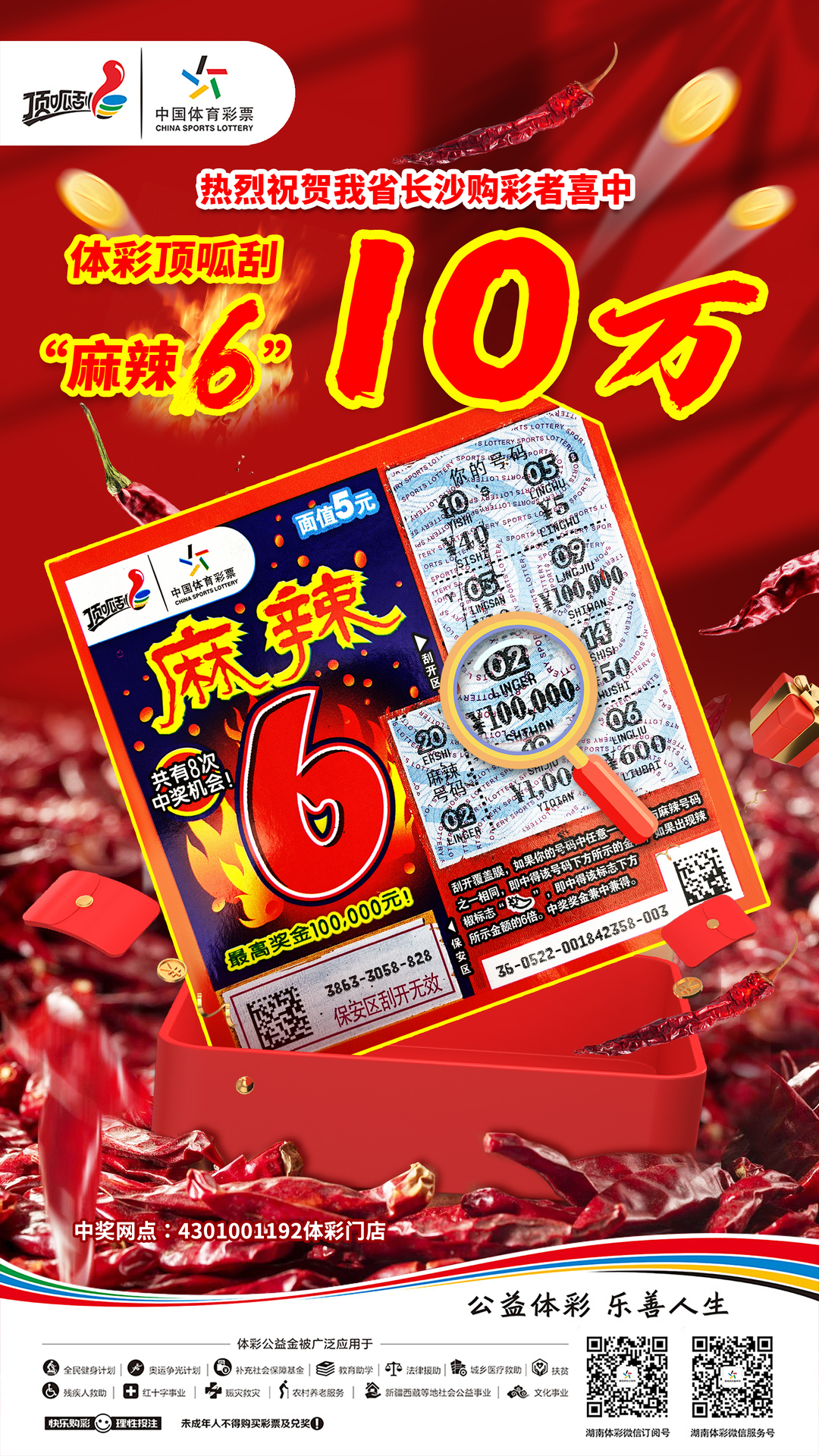 湖南日报·新湖南客户端3月29日讯(通讯员 孙涛 记者 陈普庄)10万!10万!又是10万!近日,湖南连传体彩顶呱刮中奖喜讯。在短短数天时间内,衡阳、长沙、怀化三地购彩者幸运刮出顶呱刮“炫青春行大运”“麻辣6”“中国红”大奖。