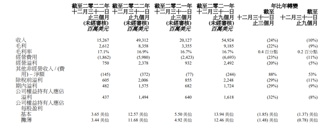 在2022/2023财年,联想集团(00992.HK)出现了营收和净利润双降的情况,来源:公司财报