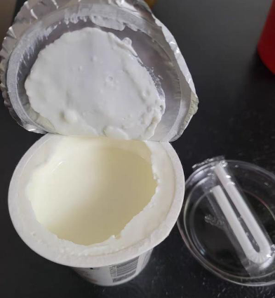 也就是说,我们吃到的盖子上的酸奶,是经过“提纯”的酸奶,水分更少,其粘稠度、蛋白质和脂肪占比相比杯中的酸奶会更高,所以味道就更加香醇。