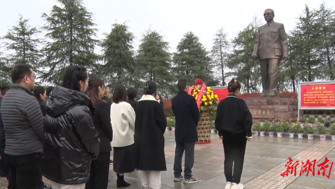 林伯渠故居纪念馆和修梅镇政府干部来到林伯渠铜像广场,向林老铜像敬献花篮、行鞠躬礼。全体党员庄严举起右手,重温入党誓词,并缓步绕行铜像进行瞻仰,缅怀林伯渠同志一生为了民族独立和解放、新中国的成立和建设所做出的丰功伟绩。