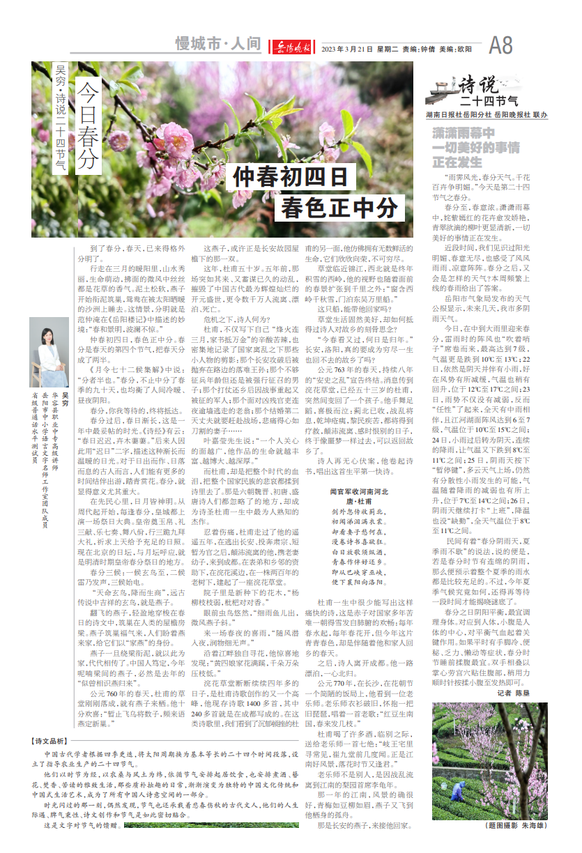 《月令七十二候集解》中说:“分者,半也。”春分,不止中分了春季的九十天,也均衡了人间冷暖、昼夜阴阳。